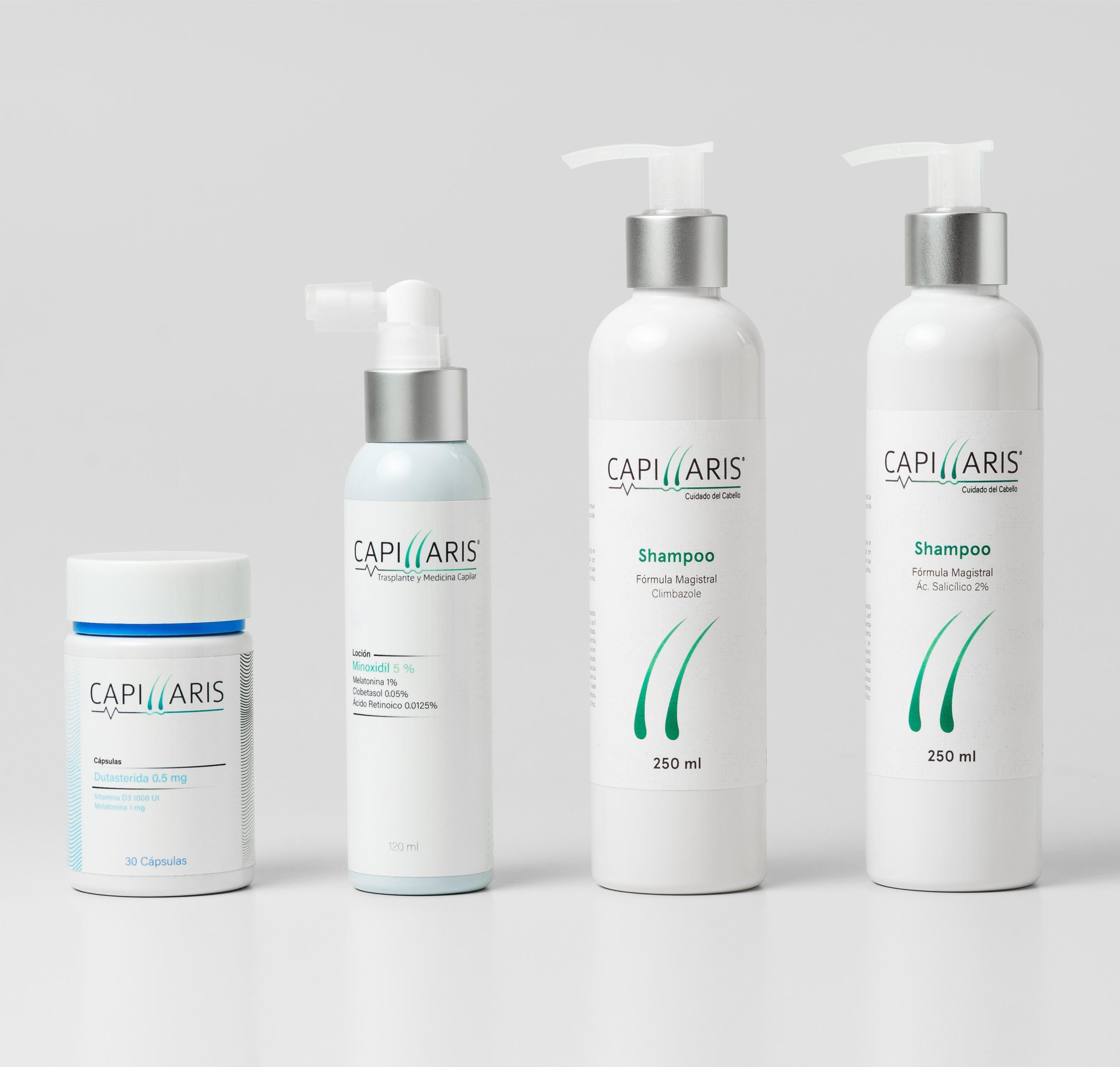 El tratamiento más completo: shampoos para el control de dermatitis seborreica, loción de minoxidil y dutasteride oral. Recomendado para casos avanzados o pacientes que desean un abordaje intensivo y médico.